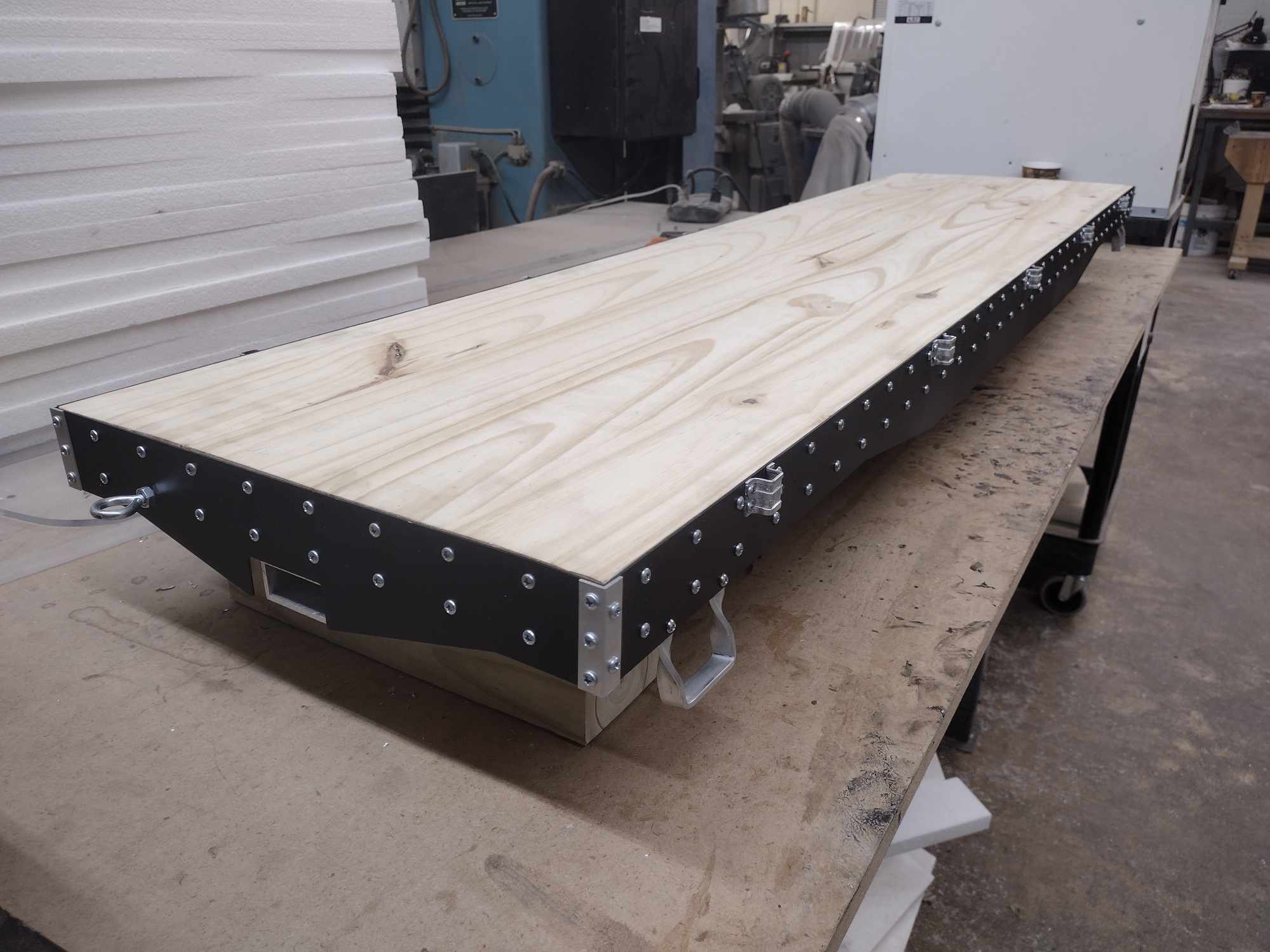 We lightly sand the aluminum sides, paint and apply a clear coat over the