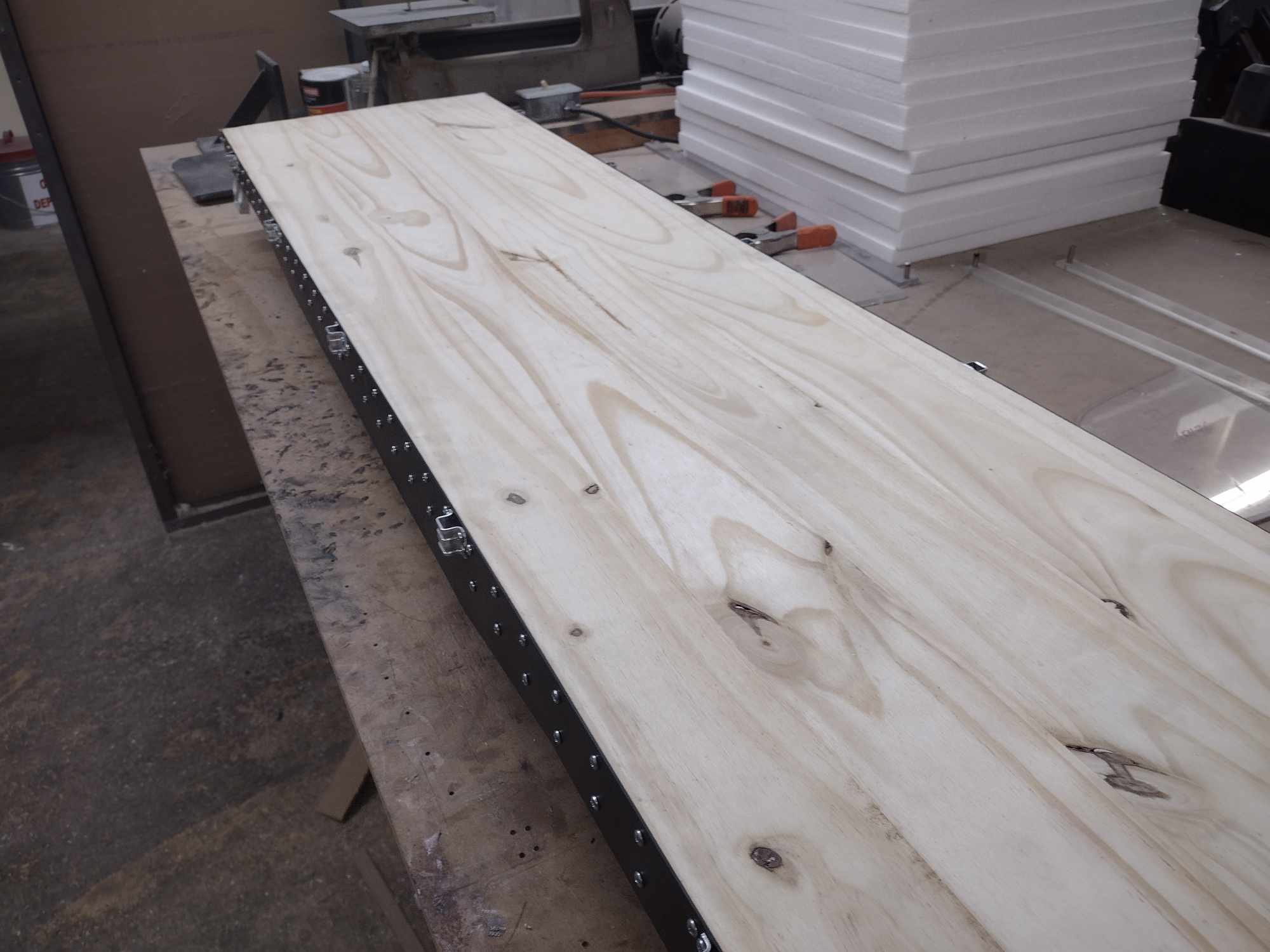 PineBoard wooden floor (WaterGuard Sealed) with 1/8" Luan subfloor glued.